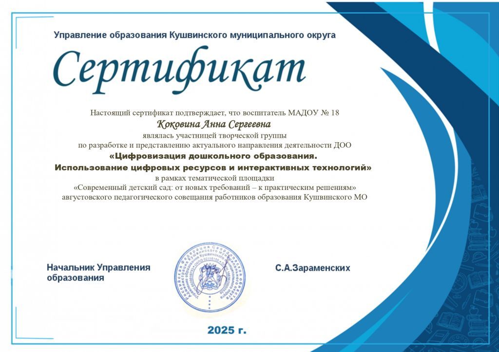 2019 - "Современные педагогические технологии в условиях реализации федерального государственного образовательного стандарта дошкольного образования"